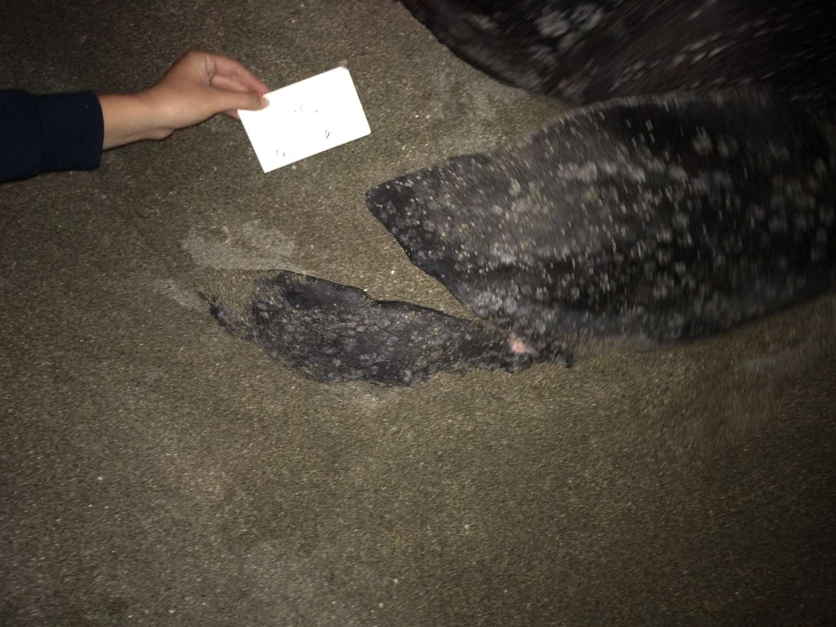 Surprisingly, leatherbacks are able to heal remarkably well from injuries like these. We have seen full flipper amputations that have healed completely. They are incredible animals! We're happy to report that she has healed completely and the only remaining sign of the propeller interaction is a missing part of the front flipper that is now much more stable. Even more important - at 176.5cm (CCLst) long and 122cm (CCW) she is the biggest turtle our team has ever encountered! That's a carapace length of almost 6' long and a width of 4'. She was definitely impressive.