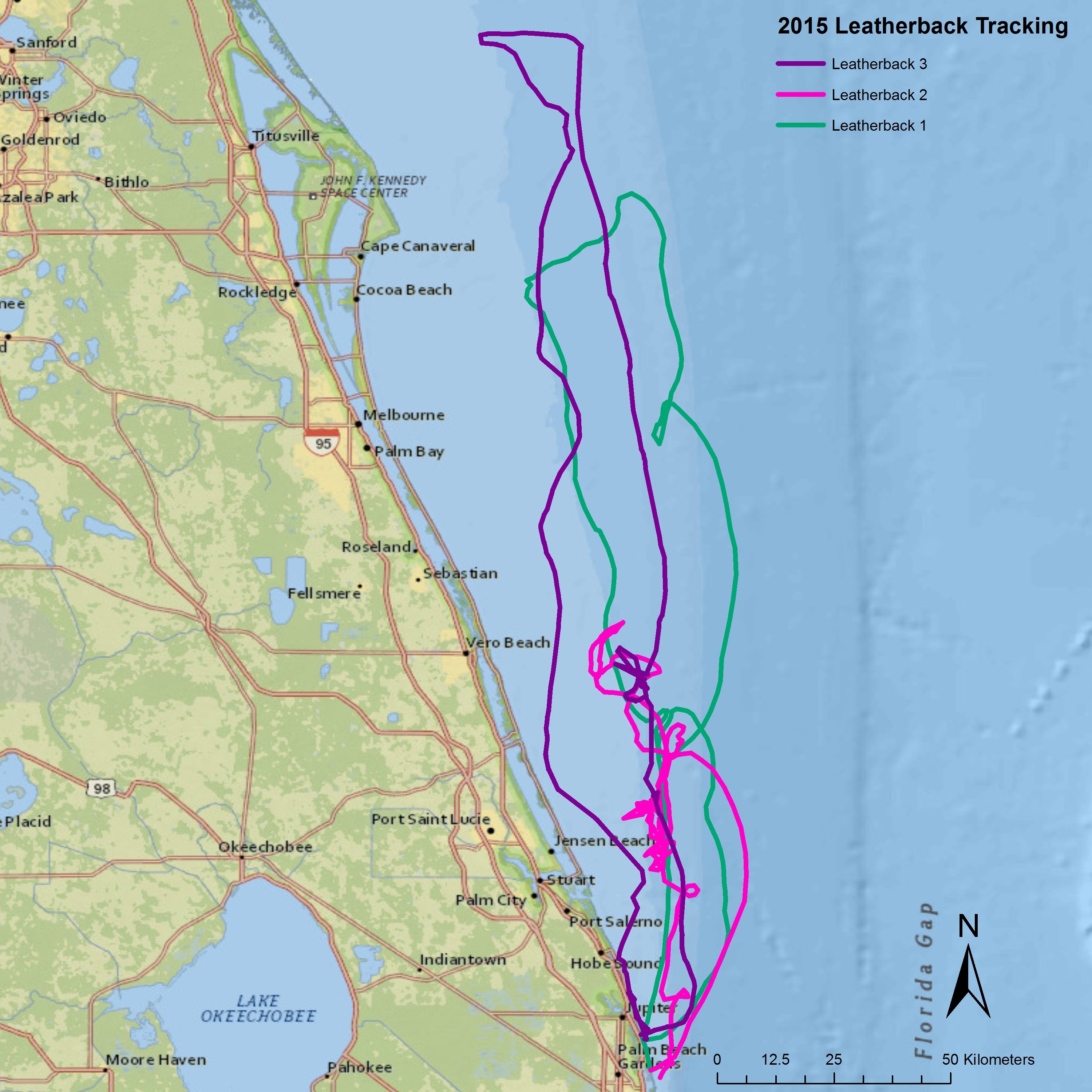Three leatherbacks that we tracked between nests last year